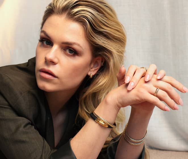 Neben der neuen Davina Michelle-Kollektion wird als Ergänzung zur aktuellen Kollektion auch der Batul in Gold präsentiert. Der Batul ist ein handgefertigtes Verbindungsglied mit einem robusten und zeitlosen Charakter. Diese Goldkollektion besteht aus einem Armband, einem Ring, einer Halskette und ein Paar Ohrringe.