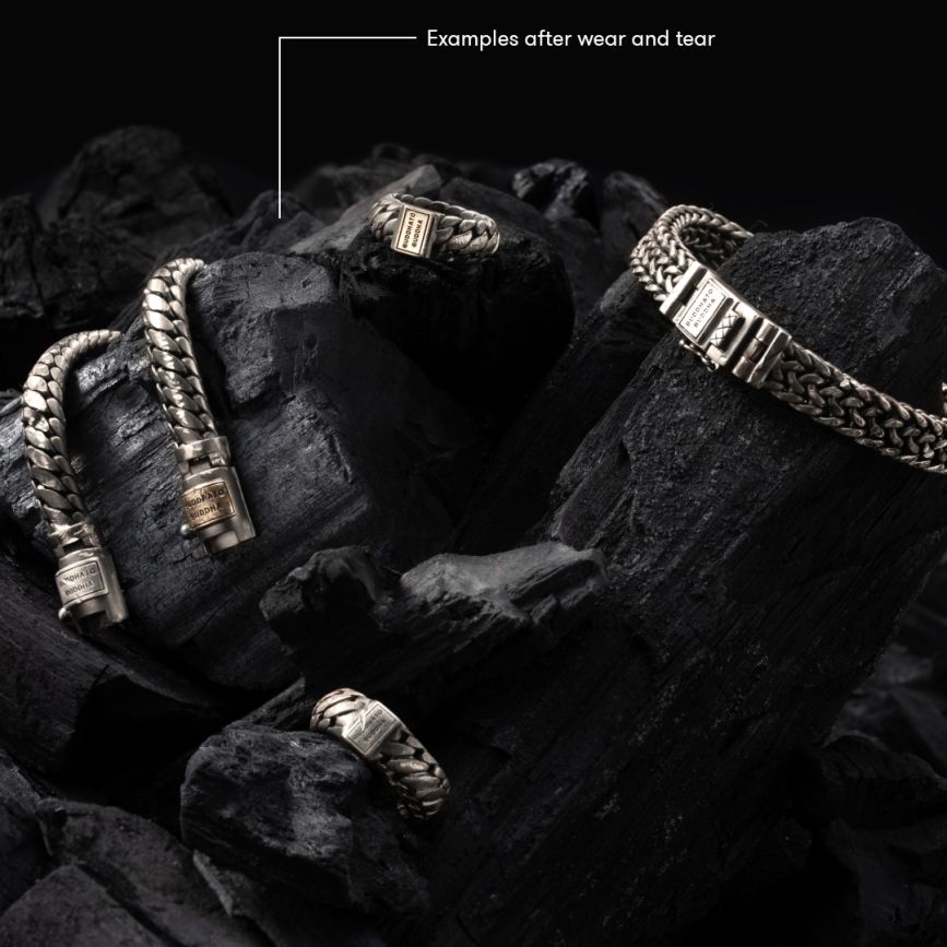 The unparalleled design of the Julius bracelet also comes with a matte rhodium finish and polished silver detail. Your lifestyle and the natural elements determine the look of your jewellery as time goes by, creating a raw, vintage look that is a personal statement formed by your journey through life. The jewellery in the Julius collection from Buddha to Buddha is still handcrafted using traditional techniques by the finest local silversmiths. Please note: This unique rhodium finish has been designed so that your jewellery takes on a vintage look over time. Meaning you develop your own personal look, one which reflects your lifestyle.