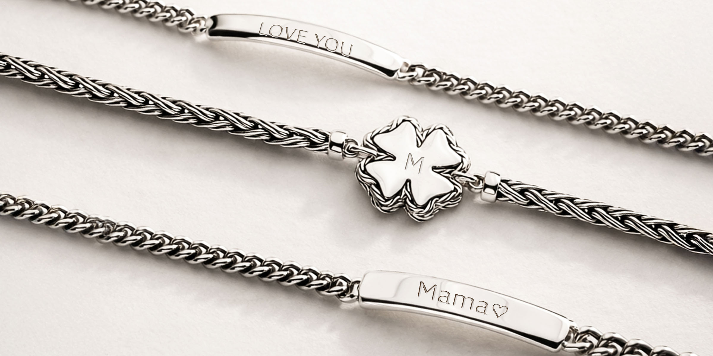 Tot en met 5 mei ontvang je gratis gravering (t.w.v. €15) op onze zilveren permanente armbanden met code "MOM15".