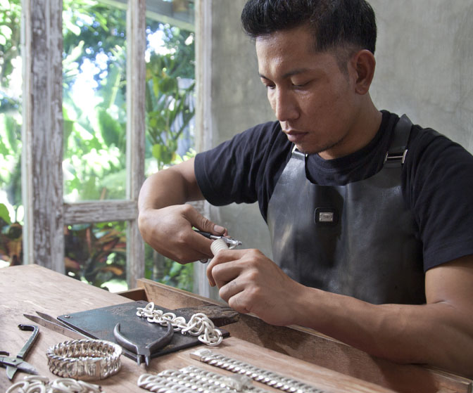 Vakmanschap is de kern van de sieraden van Buddha to Buddha. Van het ontwerpproces tot ontwikkeling, een team van ontwerpers, ontwikkelaars en zilversmeden werken samen om de unieke sieraden te creëren. De Chain armband (maat E) kost een ervaren zilversmid ongeveer vijf dagen om te maken, inclusief het slot, die bestaat uit 28 ingewikkelde stukken. Zelfs het leer dat voor de sieraden wordt gebruikt, wordt met de hand geweven door getalenteerde lederspecialisten.