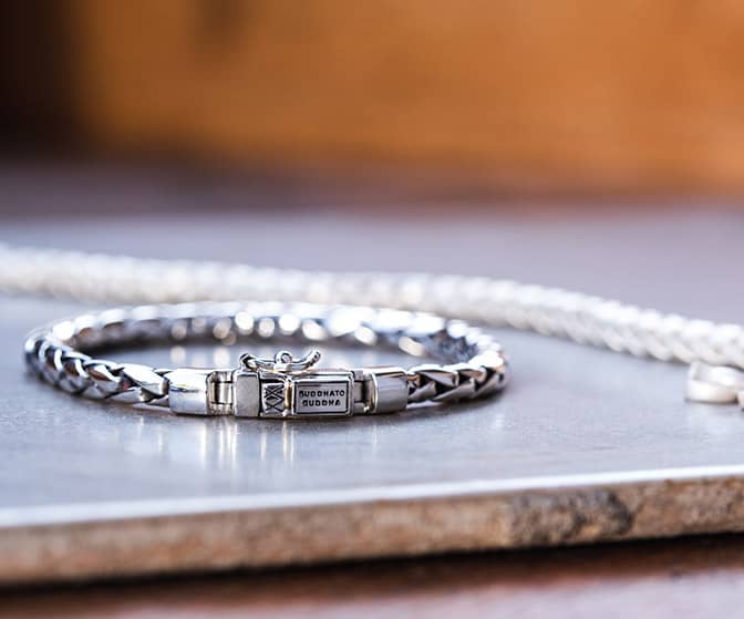 Een Buddha to Buddha armband duurt ongeveer 72 werkuren om te maken. Daarom is elk stuk ook uniek, een echte one-of-a-kind, en elk stuk heeft een ziel. Vervaardigd in 925 sterling zilver.