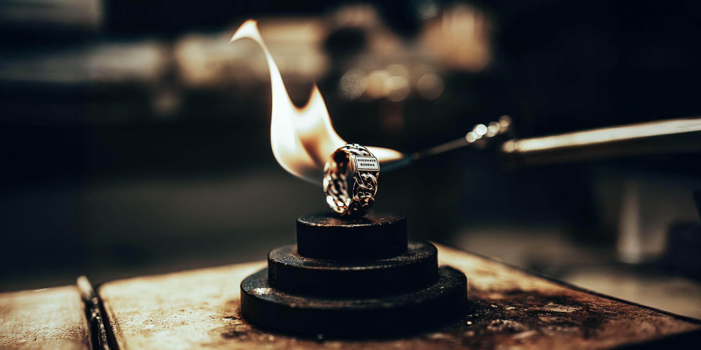 Onze sieraden worden vervaardigd van gerecycled 925 sterling zilver en 14 karaat goud, die na verhitting en vermenging tot massieve staven worden gevormd en vervolgens tot draden en schakels worden verwerkt. Elke schakel wordt met de hand gevlochten tot een uniek ontwerp, waarbij technieken zoals hameren, strekken en twisten karakter en diepte geven. Door oxidatie ontstaat de kenmerkende uitstraling; bij Black Rhodium sieraden wordt daarbovenop een rhodiumlaag aangebracht voor een donkere, krachtige finish. Tot slot wordt elk sieraad zorgvuldig gepolijst voor een perfecte afwerking een ambachtelijk proces waarin traditie en precisie samenkomen.